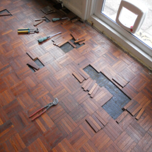 Careful repairs and restoration work to original parquet floors.